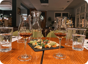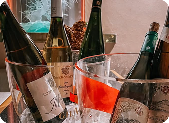 Součástí degustace je láhev vody Aqua Angels pH 8,8, sýrový talířek a pečivo. V případě zájmu můžeme nabídnout Menu spojené s párováním vína, připravili bychom speciální nabídku.